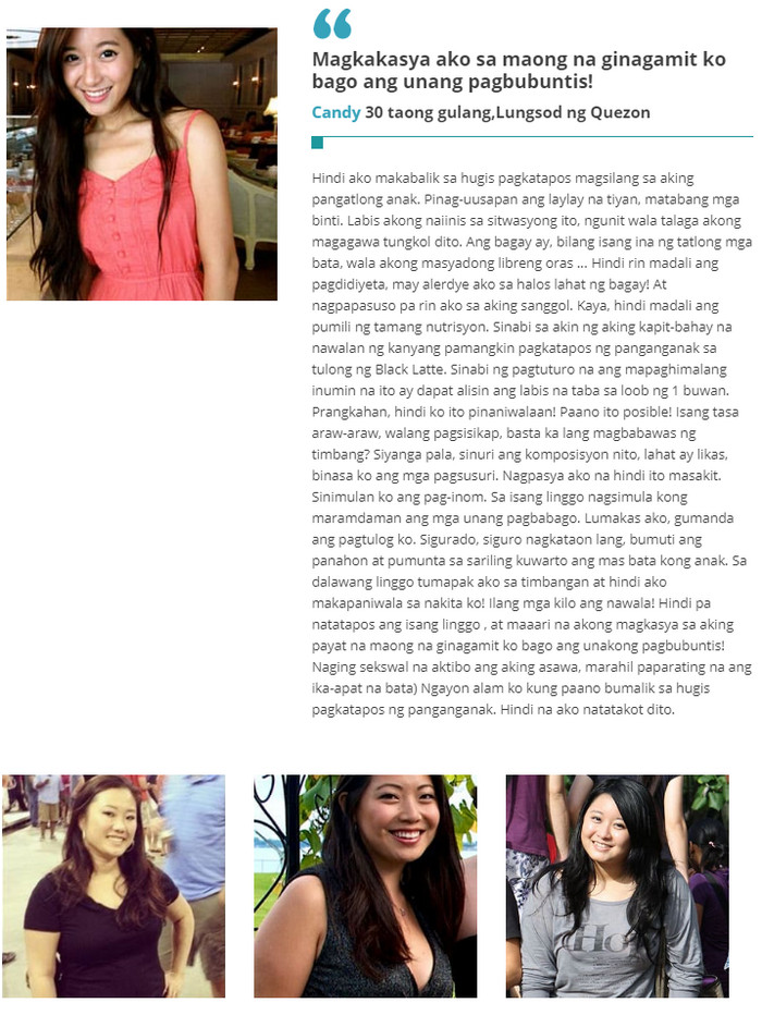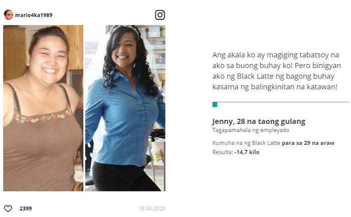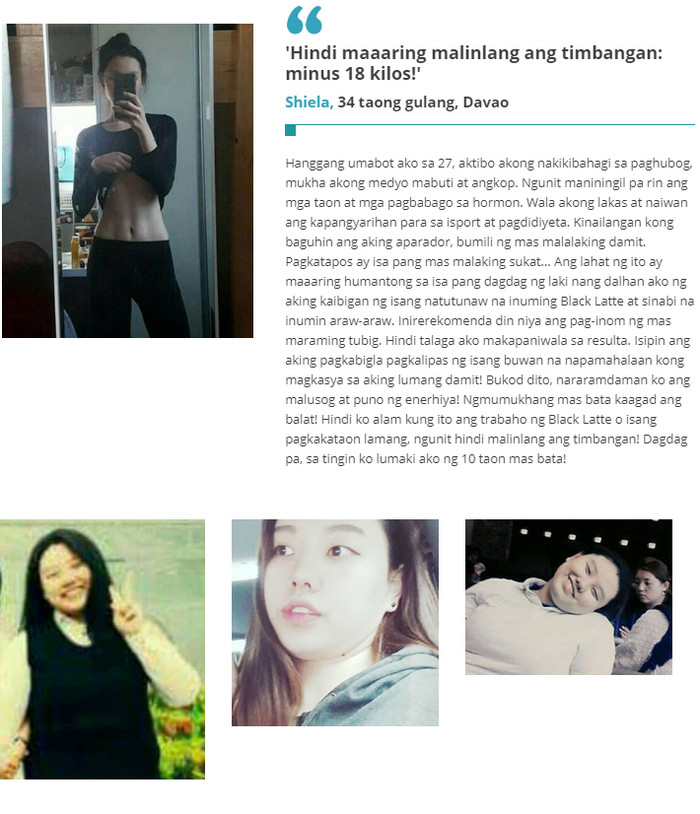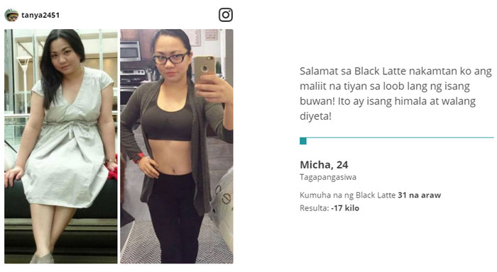 Ang isa pang plus Black Latte – ang bigat ay umalis sa mga lugar ng problema, habang ang dibdib ay hindi bumababa, pinapanatili ang nakaraang dami at pagkalastiko. Black Latte ba ay epektibo.